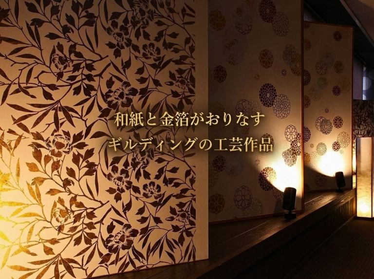 由五十崎金箔和纸成的折叠屏风位于9楼的电梯厅…