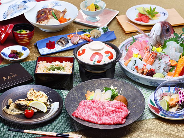 ★牛肉火鍋、愛媛郡時令魚類生牛肉片等菜餚※圖像是圖像※